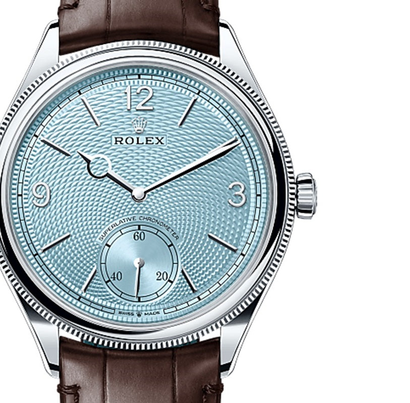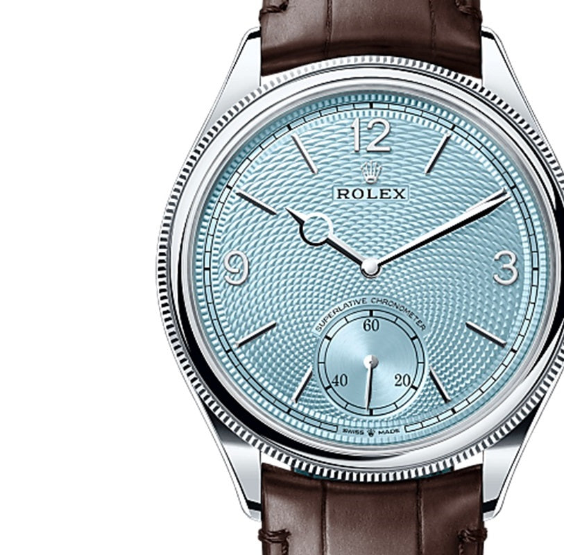 Introducing the Rolex 1908. a masterpiece that embodies the pinnacle of luxury and craftsmanship. This exquisite timepiece features a 39mm Platinum case with a polished bezel. exuding timeless elegance. The Ice blue dial is adorned with black hour markers and hands. providing a striking contrast for enhanced readability. Powered by the Rolex Caliber 7140. it offers a remarkable power reserve of approximately 66 hours and is water-resistant up to 50 meters.?The watch is complemented by a sophisticated black alligator leather strap with an 18K white gold folding Crownclasp. Offered in unworn condition. this exceptional watch comes as a full set with the original Rolex box. booklets. and a Rolex warranty card dated 2024.?Secure this luxurious timepiece today and experience the epitome of Swiss horological excellence. Perfect for any collection. the Rolex 1908 blends heritage with modern sophistication. making it an ideal companion for any occasion.